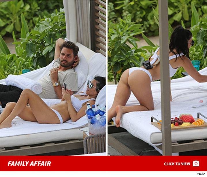 The ex-couple are on vacation with their kids in Hawaii this week, relaxing poolside with some fresh fruit and drinks. Scott looks like he forgot his swimsuit ... but Kourtney definitely remembered her finest bikini.